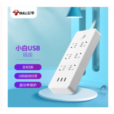 公牛(BULL)GNV-UUN153 1.8M 超功率保护 新国标公牛小白USB插座/插线板插 3usb接口 6孔全长1.8米