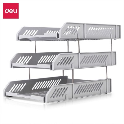 得力9209三层文件座(浅灰)(只) 牢固加厚三层文件座/文件筐/文件架/文件盘 塑料/金属 办公用品