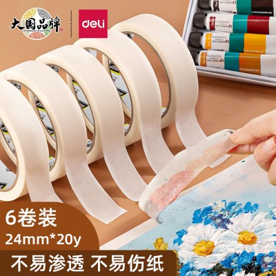 得力(deli)30670 美纹纸胶带/装修遮蔽带/无痕纸/贴膜 24mm*20y*145um(18.3m/卷) 6卷袋装
