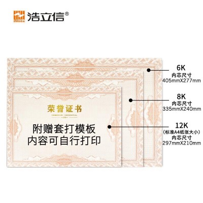 浩立信 A5902 8K荣誉证书内芯 10张/包 单位:包