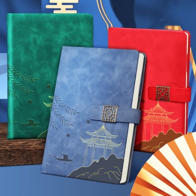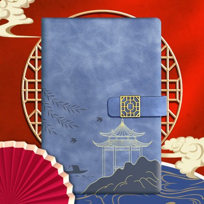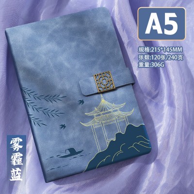 法拉蒙 中国风笔记本本子A5高颜值记事本日记本国潮文创礼品加厚文艺精致商务办公记录本定制logo 灰蓝
