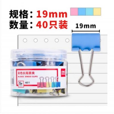 得力 8555 彩色长尾夹 19mm (40只/筒)