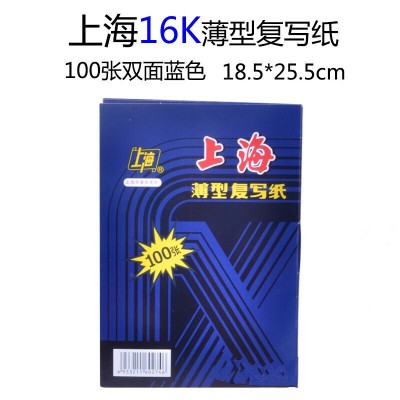 上海牌复写纸 48K32开 双面薄型 蓝色复写纸 16K复印纸 办公财务A4 蓝印纸 222-16K复写纸(18.5*25.5cm)【100张装/盒】