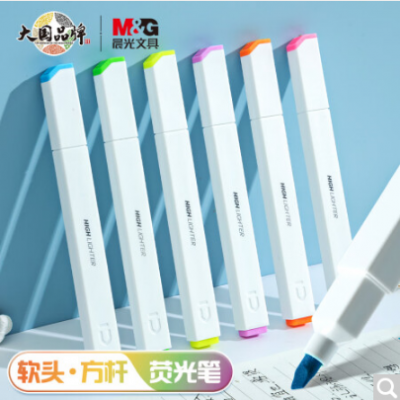 晨光(M&G)文具6色软头荧光笔 考试复习重点标记笔 彩色记号笔 淡彩海盐色 AHMU1604