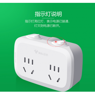 公牛(BULL)转换插头/一转二插座/无线转换插座/电源转换器 适用于卧室、厨房 2位分控插座GN-9323