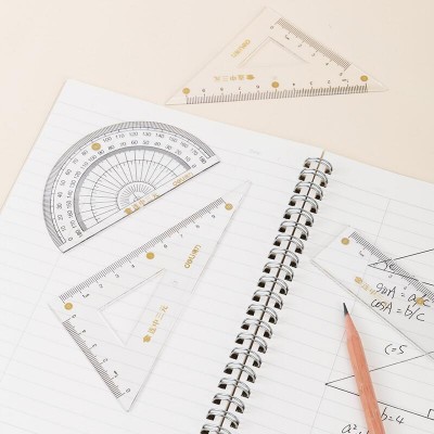 得力(deli)71950 连中三元绘图制图考试套尺 直尺三角尺量角器4件套15cm经典4件套