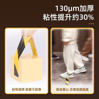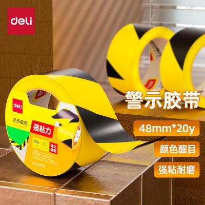 得力(deli)黄黑安全警示胶带 警戒划线隔离斑马线安全胶带定位 48mm*20y 1卷 地面5S定位 警示胶带-黑黄48mm*20y单卷