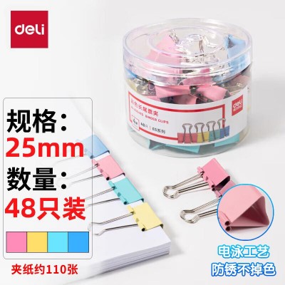 得力(deli)48只25mm彩色长尾夹票夹 4#中号金属燕尾夹票据文件夹子 办公用品 48只/筒 8554ES默认规格
