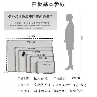 挂式白板磁性写字板 60*90cm 单面白