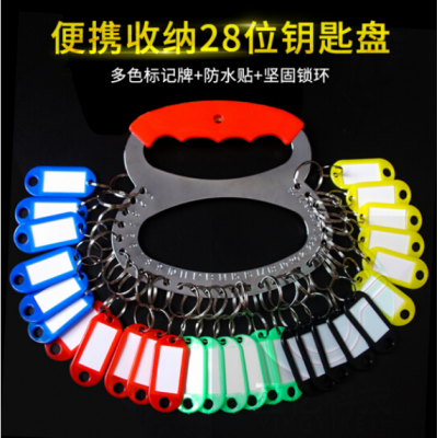 钥匙盘 钥匙环圈钥匙链可标记钥匙扣宿舍钥匙管理收纳用品手提金属钥匙管理牌 28位带标记牌