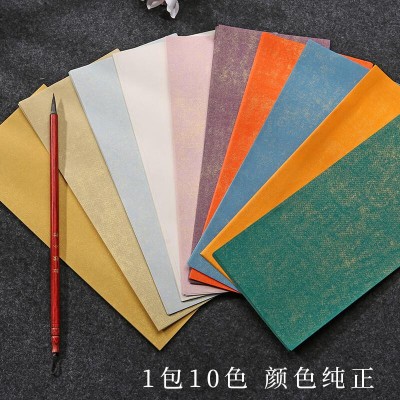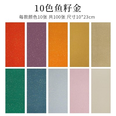 100张一笔笺彩色宣纸书法 信笺花笺便签蜡染小楷书法 10色鱼子金笺混搭(100张) 10*23cm10色鎏金笺混搭100张