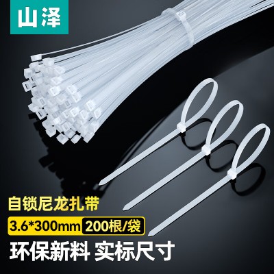山泽(SAMZHE)ZD-61 扎带大号200支装 3.6*300mm 白色自锁式尼龙扎带 小号线缆理线带塑料捆扎包扎带 束线带绑带