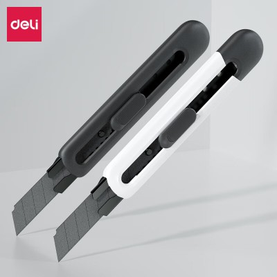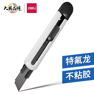 得力(deli)TD501 大号特氟龙刀刃美工刀壁纸刀裁纸刀 防粘防黏不易粘胶 办公用品 尾部自带折刀器 白色