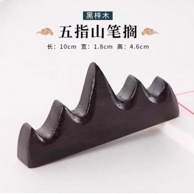 五指山笔搁 笔山笔架文房四宝毛笔书法国画专用实木多功能笔托镇纸黑梓木毛笔架