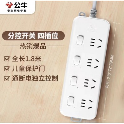 公牛(BULL)分控插座/插线板/插排/排插/接线板/拖线板 GN-B3043 4位分控全长1.8米 独立开关(可当天配送发货)