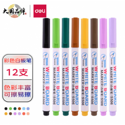 白板笔 得力(deli)彩色白板笔套装S506 12色 便捷易擦 儿童涂鸦绘画 办公教学会议