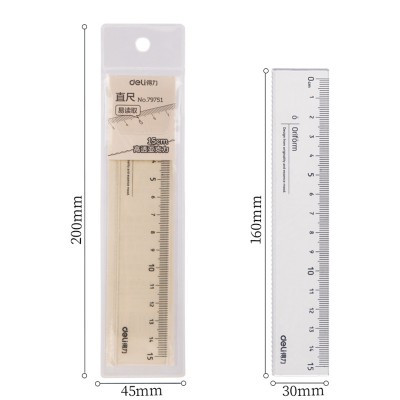 得力79751高透亚克力15cm易读取刻度清晰带波浪学生测量直尺 尺子 15cm直尺带波浪边(79751)