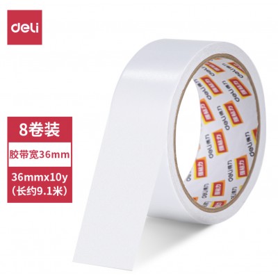 得力30415棉纸双面胶带1卷36mm*10y*80um(白)