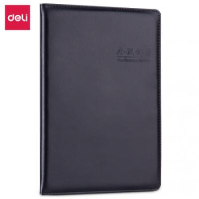 得力(deli)16K80张大号会议记录本皮面本 黑色 7949