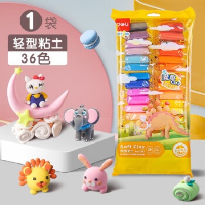 得力(deli)粘土轻型粘土36色超轻粘土儿童橡皮泥彩泥太空泥 (67857) 轻便袋装