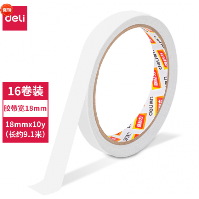 得力30402棉纸双面胶带18mm*10y*80um(白)(16卷/袋)