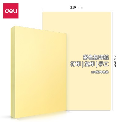 得力7757 80g彩纸-297*210(浅黄)(100张/包)