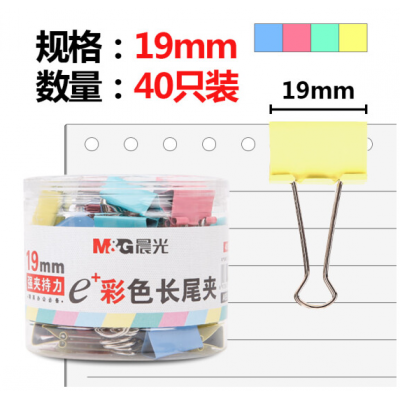 晨光(M&G)ABS92742 19mm长尾夹彩色 40枚/筒 1盒装