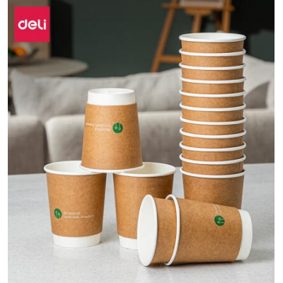 得力(deli)280ml一次性杯子 纸杯/水杯 牛皮纸外层 双层加厚贵宾接待用 50个装 19209