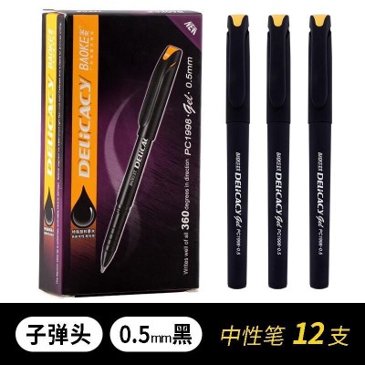 宝克PC1998磨砂杆中性笔商务黑色水笔0.5mm头碳素笔办公文具 PC1998 黑色12支默认规格