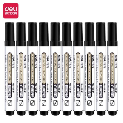 得力(deli)办公会议白板笔 可擦易擦黑色 10支/盒6811耐磨笔头顺滑黑10支
