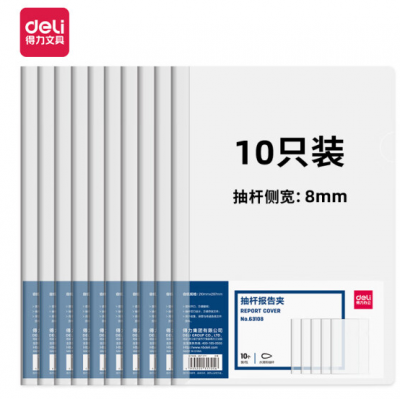 得力(deli)10只A4透明拉杆夹 8mm背宽水滴抽杆夹报告夹 学生考试收纳 63108 办公用品