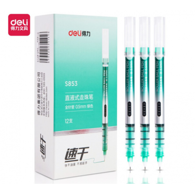 得力(deli) S853 直液式走珠笔 0.5mm 绿色 全针管12支/盒