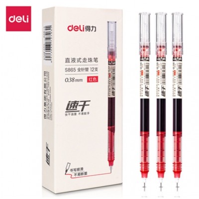 得力S865直液式走珠笔0.38mm全针管(红)(支)