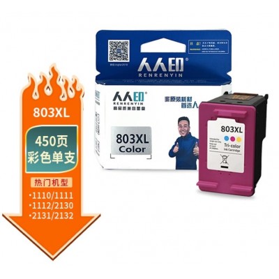 人人印 803XL墨盒 大容量(打印450页) 适用HP惠普打印机 1112 2620 2621 2622 2132打印机墨盒 彩色3C支