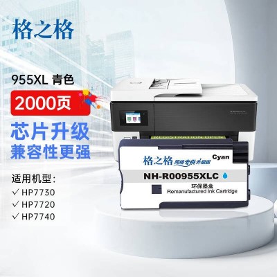 格之格 适用惠普7740墨盒 7730 7720 8218 8216 8720 8725 8727 8740 8730 惠普8210打印机墨盒 955xl青色