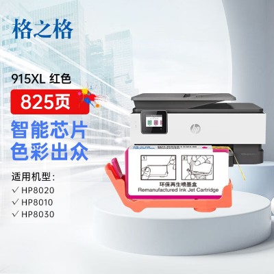首页 > 办公用品 > 喷墨盒 > 格之格915XL墨盒适用惠普8010 8013 8012 8020打印机8022 8026 8028 8030 8015 8018墨盒 惠普915墨盒 红色 102177