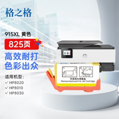 首页 > 办公用品 > 喷墨盒 > 格之格915XL墨盒 适用惠普officejet pro8020 8012 8013 8015 8022 8026 8030 8026 8018打印机墨盒墨水 黄色 102178