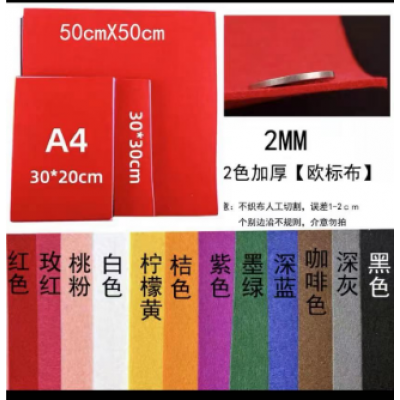 首页 > 办公用品 > 文具 > 2mm加厚不织布进口布料幼儿园手工diy布艺无纺布材料包毛毡 50*50cm 12色