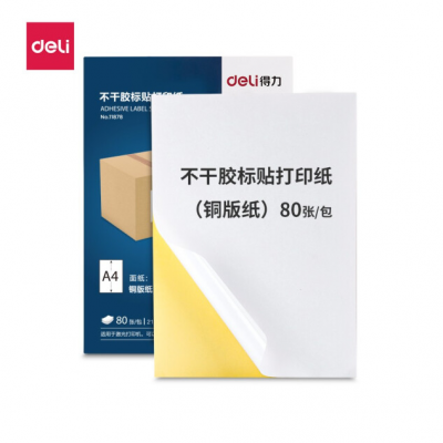 首页 > 办公用品 > 文具 > 得力(deli)A4不干胶标贴打印纸 带背胶可粘贴标签纸 光面铜版纸 80张 11878