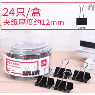 得力(deli)长尾夹 24只32mm黑色长尾夹票夹 中号金属燕尾夹票据夹 凤尾夹文件夹子 鱼尾夹 资料试卷夹 办公用品 8563(2筒起送)