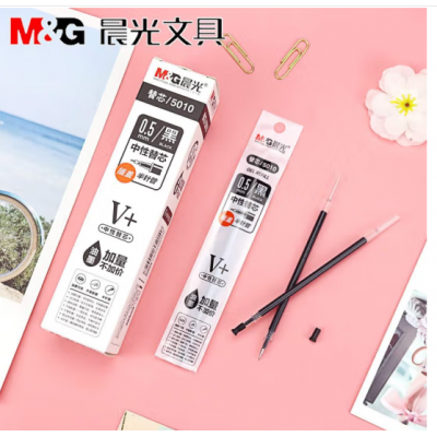 晨光(M&G) 晨光文具笔芯替芯 V+系列笔芯替芯 插盖中性笔笔芯替芯 0.5mm黑色半针管笔芯替芯 学生办公书写速干水笔芯替芯 5010 黑色 0.5半针管单支装 0.5mm(黑)