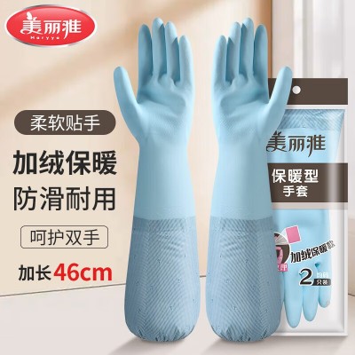 美丽雅 家务清洁橡胶洗碗手套 加绒加厚加长胶皮手套均码 颜色随机(zhyghf_981206420)