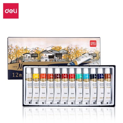 得力73886_12色12ml中国画颜料(混)(12色/盒)工笔画山水画专用中国画颜料套装