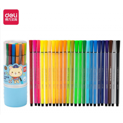 得力(deli)24色可洗水彩笔 六角细杆儿童画画彩色涂色颜色笔文具 收纳筒学生礼物春季出游写生