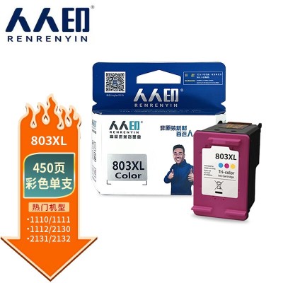 人人印 803XL墨盒 大容量(打印450页) 适用HP惠普打印机 1112 2620 2621 2622 2132打印机墨盒 彩色3C支