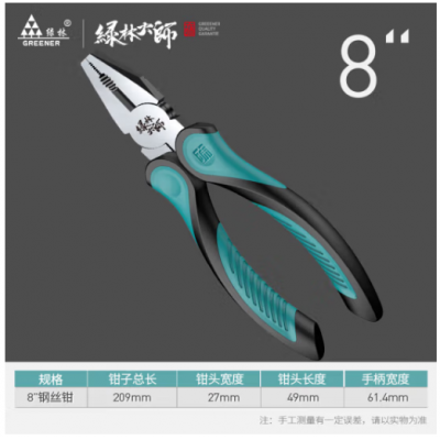 首页 > 建筑建材 > 手动工具 > 绿林(GREENER)老虎钳钢丝钳8寸家用钳子省力工业级多功能虎口钳大师系列剪线钳
