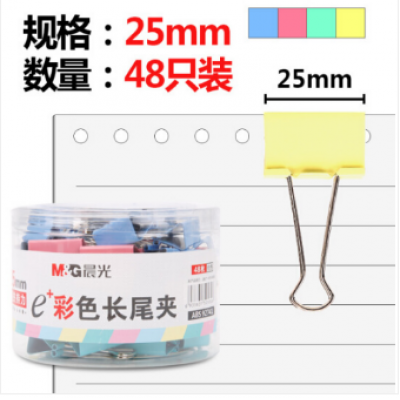 晨光(M&G)ABS92741 25mm彩色长尾夹 金属票据夹 Eplus系列办公燕尾夹 48只/筒