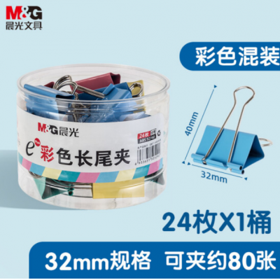 首页 > 办公用品 > 文具 > 晨光 ABS92740长尾夹 32mm彩色燕尾夹票据夹 24只/罐