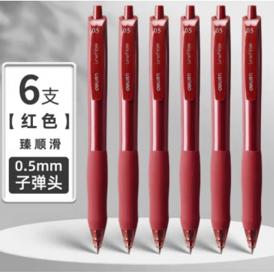 得力红笔教师批改作业专用学生老师按动水笔老师办公中性笔划重点大容量红色老师办公签字红笔 S60-6