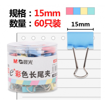 晨光 ABS92743 15mm 彩色筒装长尾夹 办公学习夹装票夹 60只/筒.